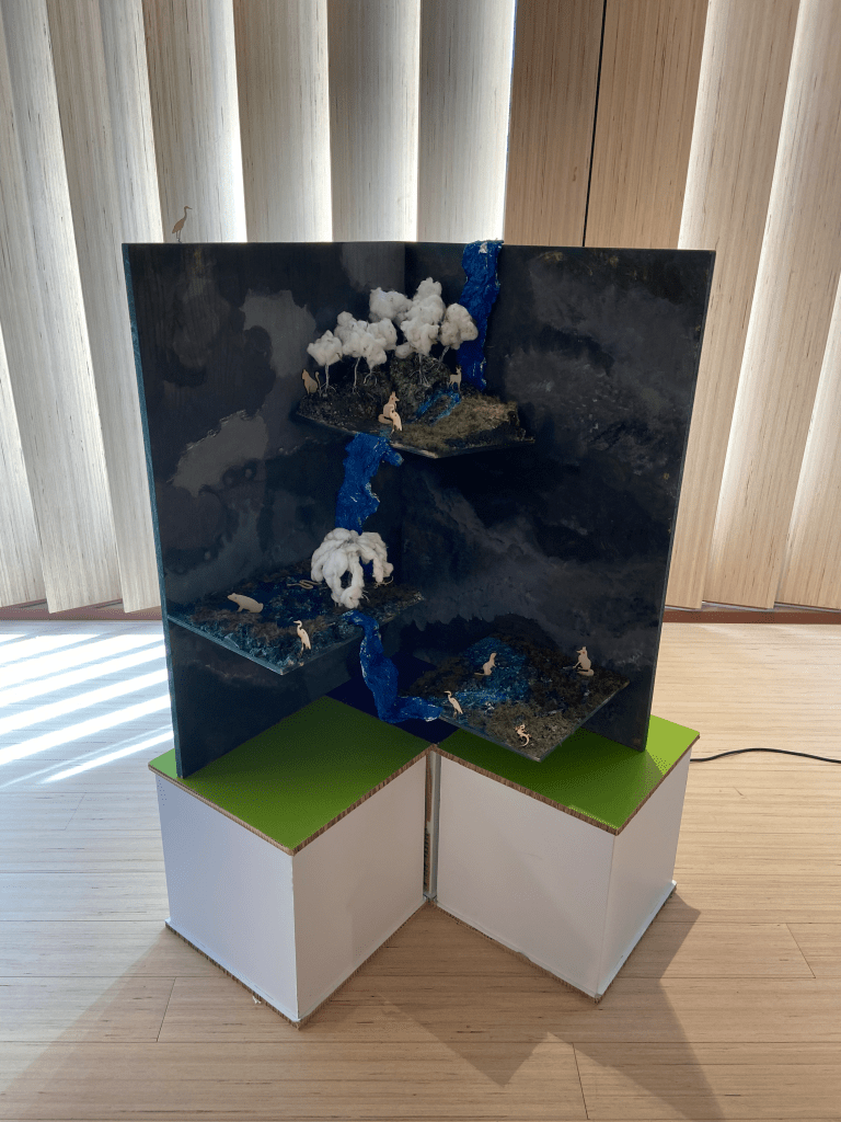 Through this project, we aim to show an invisible part of his presence, by providing a means of visualizing a non-visible part of the world, the “food chains”. These three models represent different simplified environments, subject or not to human impact. Although highly simplified in comparison with reality, the models reveal a poverty of diversity when man plays a major role in the life of the environment (mono-cultivated forest), but above all a weakness in their resistance (few phyla). Humans take a very important place in the world.