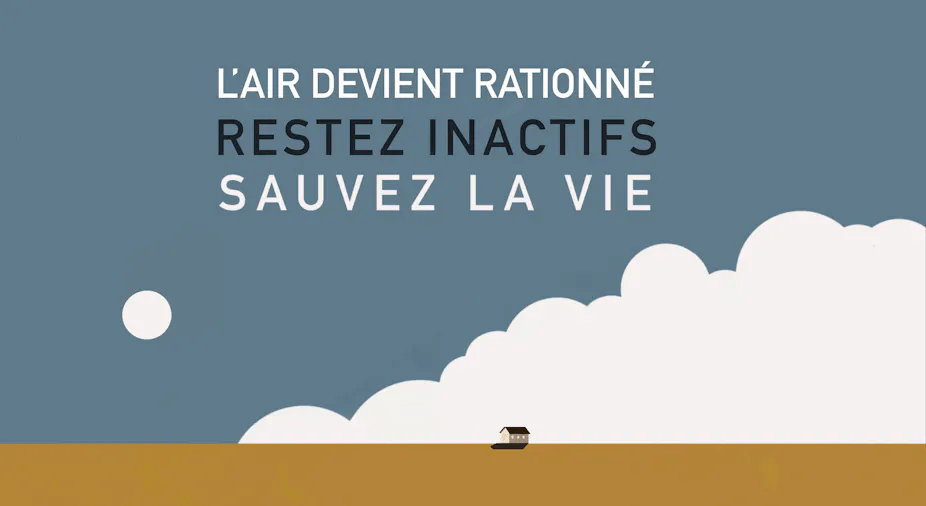 And we imagined a fictional, dystopian everyday life: oxygen is becoming scarce and, to cope, society intervenes everywhere and conditions everyone.