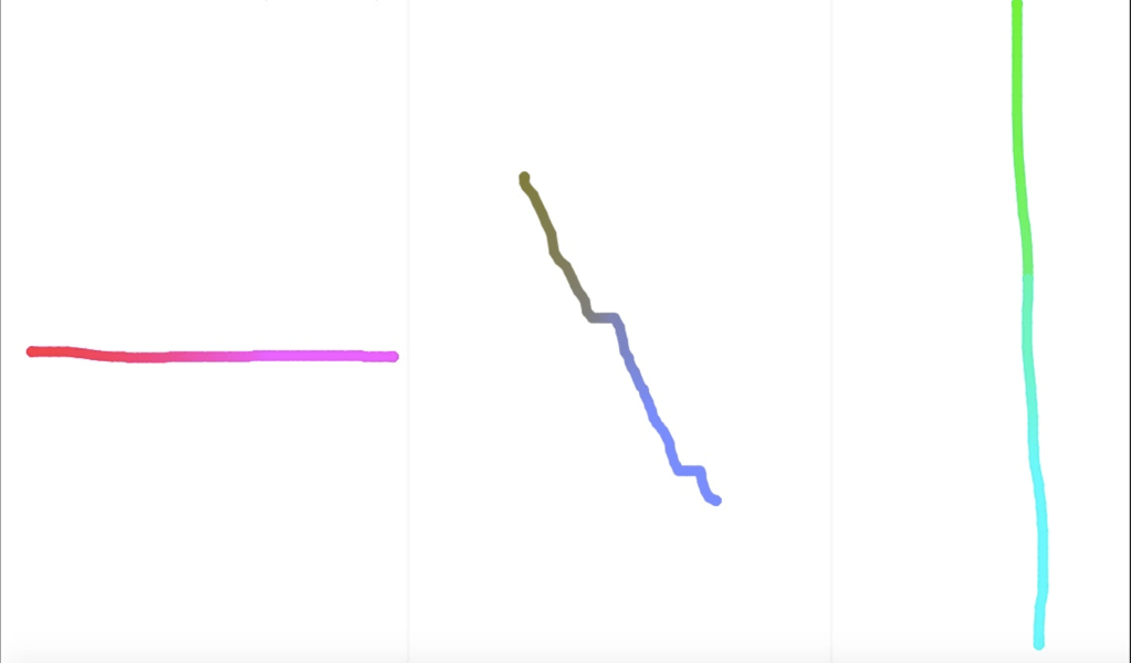 2- with my finger on the trackpad, I can define a line on the left area of the trackpad as defined before. while i am defining this line with my finger, position (xl(i), yl(i)) of my finger is simultaneously plotted in this left area, and is acquired in memory. x is the vertical axis;