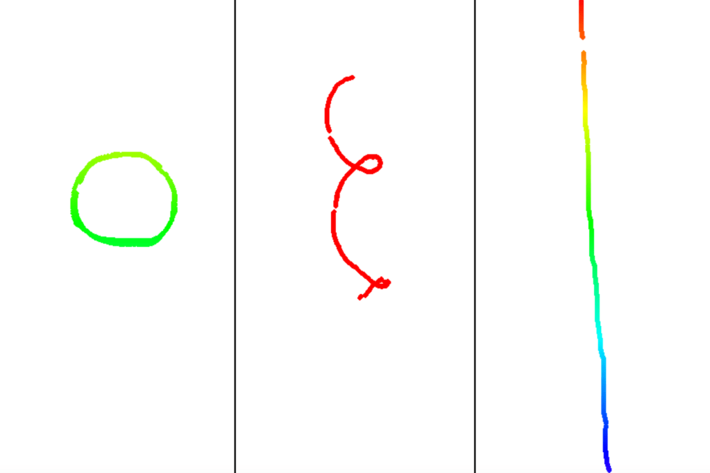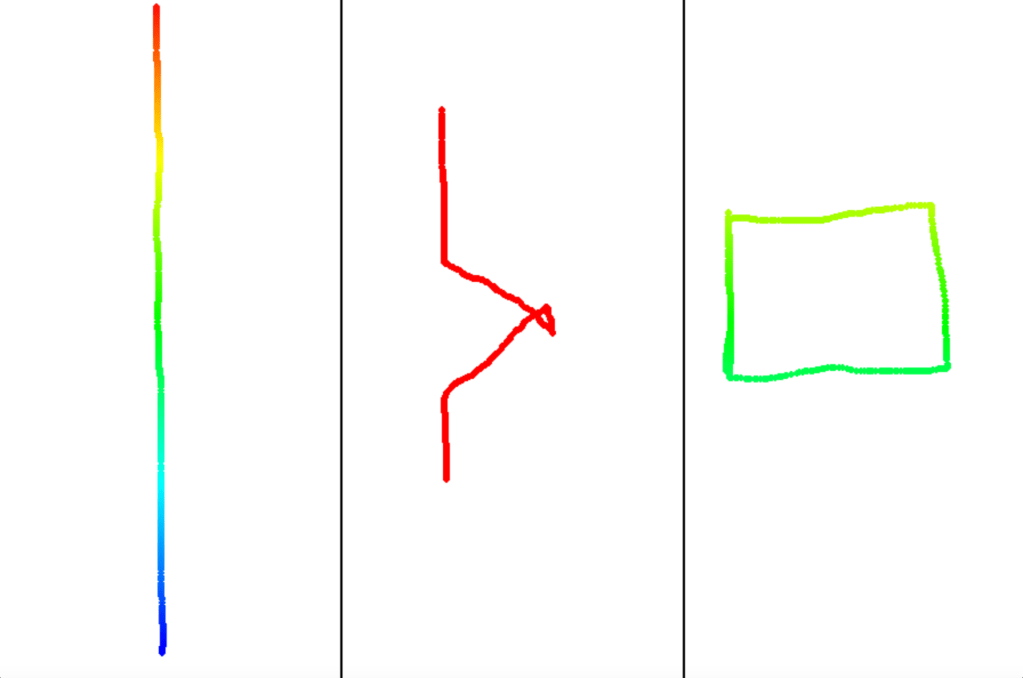 3- with my finger on the trackpad, I can define a line on the right area of the trackpad as defined before. while i am defining this line with my finger, position (xr(i), yr(i)) of my finger is simultaneously plotted in this right area, and is acquired in memory