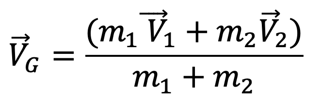 For two masses m1 and m2, the velocity of the center of mass is « simply » written as :