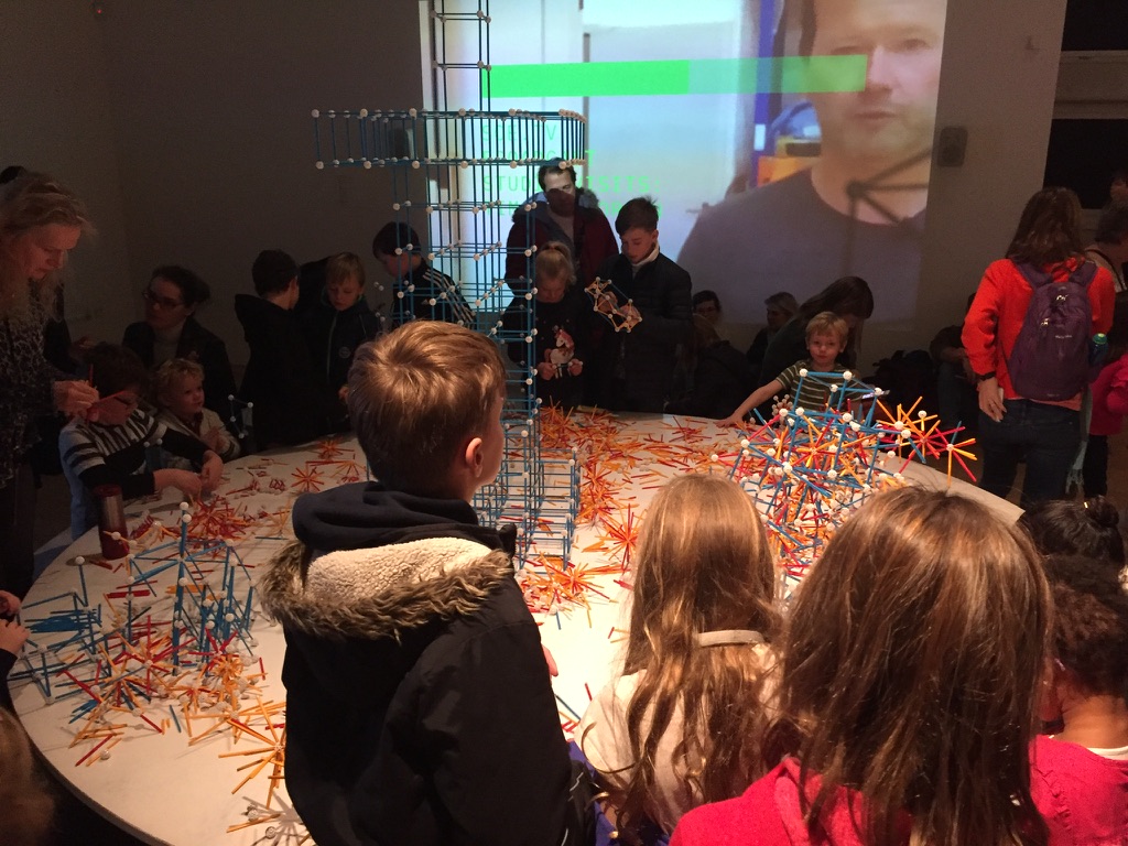 Jeux avec les vibrations d’un mur captées par un Smartphone lors de la Game Jam Mouvements et Smartphones au Carrefour du Numérique à Universciences (octobre 2016).