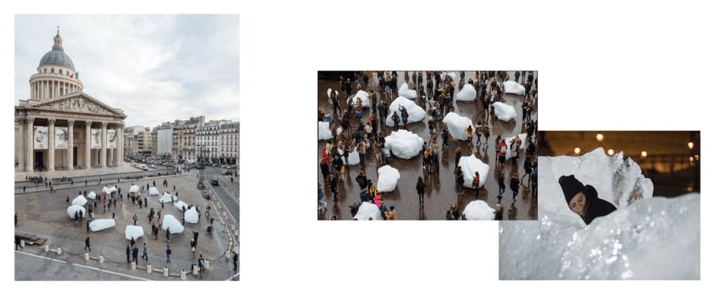Olafur Eliasson et de nouvelles générations d’artistes et de designers par leurs expositions, leurs événements et leurs actions sont non seulement des témoins mais aussi des militants sur ce terrain. Ils viennent nous aider à être au monde ensemble aujourd’hui et demain. Les œuvres comme Ice Watch sont explicitement là pour cela.