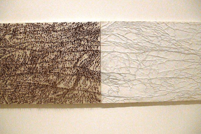 Giuseppe Penone montre des épines et du marbre côte à côte pour induire chez le regardeur une réaction littéralement épidermique. Nous cherchons à étendre la perception tactile par la technologie pour de nouvelles sensations qui surprennent notre relation au réel. Effet garanti quand les murs attirent à distance comme on le voit sur la photo ci-dessus. Effets garantis dans les deux cas !