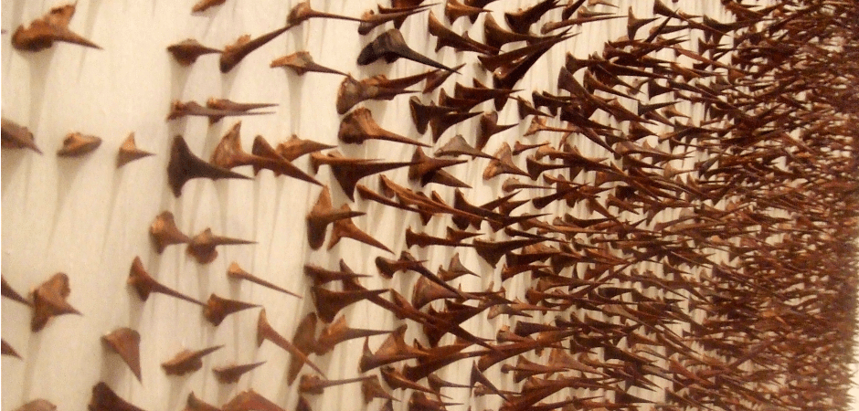 « D’un côté il y a le marbre lisse… » dit Giuseppe Penone dans « Le regard tactile », recueil d’entretiens avec Francoise Janin. De l’autre les épines. Dans le même recueil, « quand vous avez une épine dans la main ou le pied vous savez très exactement ou se trouve l’épine sur la topologie du corps, vous pouvez identifier le point précis où elle agit. Même que ce point est minuscule, vous avez une compréhension exacte de la position. »