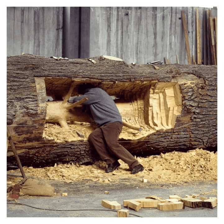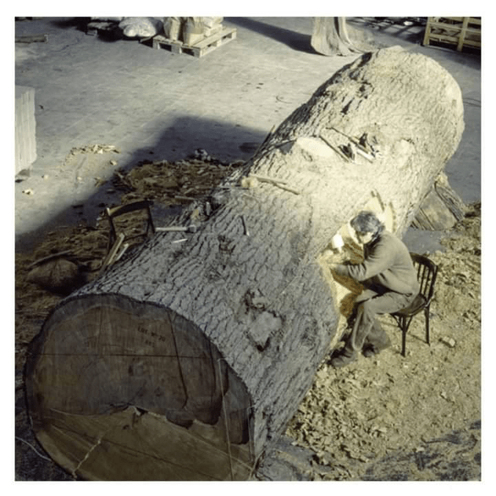 C’est devant la révélation des formes de l’arbre jeune toujours présentes au centre de ces poutres et dégagées par sa taille, que j’ai découvert Giuseppe Penone. Ce devait être au Musée de Grenoble. Pour ma part, pas de réflexion ici. Seulement une émotion. Emergeant de cette poutre inerte, cette vision immédiate de la présence d’un arbre singulier par ses formes développées au cours d’une vie passée. Bien sûr. Evident. Justement.