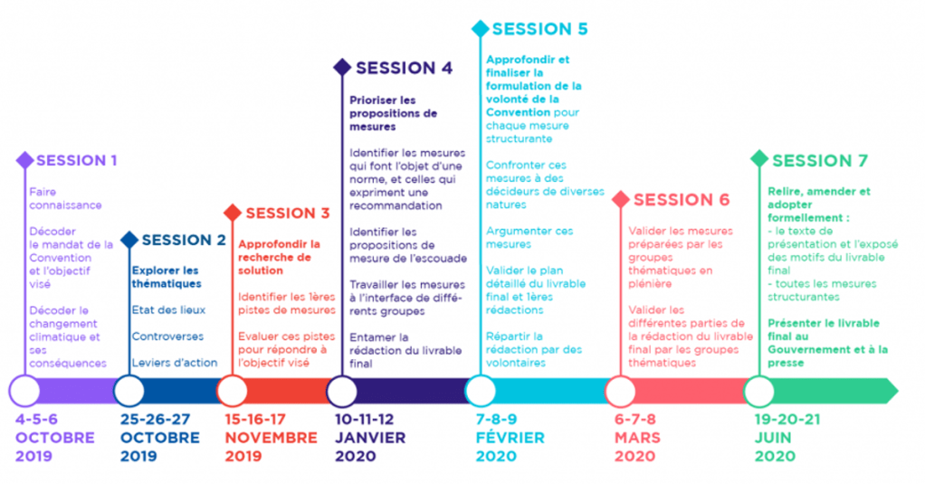 The agenda of the Citizens’ Climate Convention between October 2019 and June 2020.